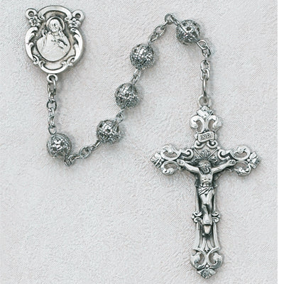 Rosario Plata Filagrana Con Centro Del Sagrado Corazón y Crucifijo De Plata 925 6mm