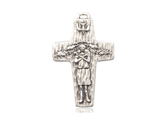 Colgante de crucifijo papal de plata esterlina en una cadena de acera de luz de plata esterlina de 18 pulgadas