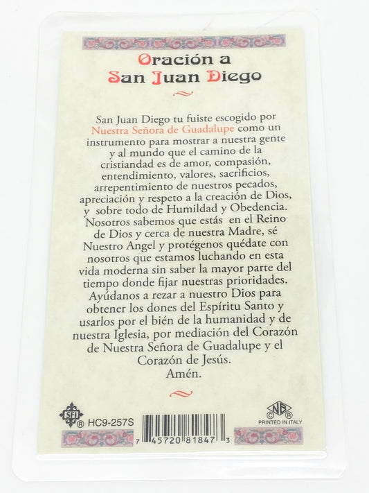 San Juan Diego Tarjeta Sagrada lmainada (Cubierta de Plástico)