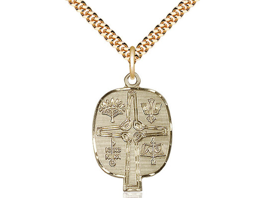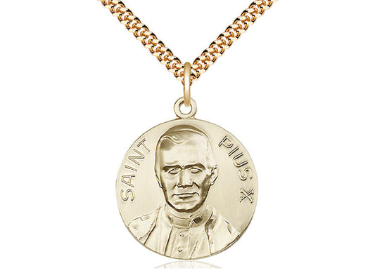 Colgante Pope X relleno de oro de 14kt en una cadena de acera llena de oro de 18 pulgadas.