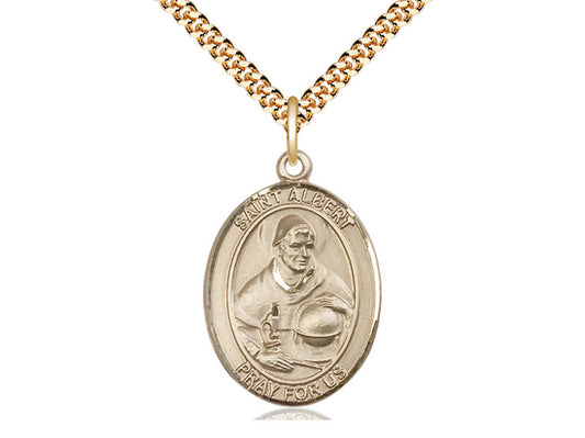 ST Albert llena de oro de 14kt El gran colgante en una cadena de acera pesada de una placa de oro de 24 pulgadas.