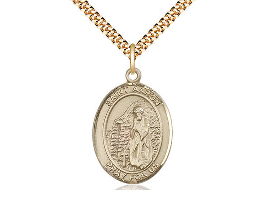 Colgante de ST Aaron relleno de oro de 14kt en una cadena de acera pesada de placa de oro de 24 pulgadas.