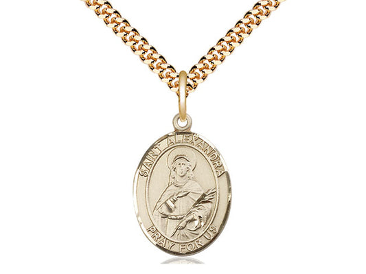 Colgante de ST Alexandra relleno de oro de 14kt en una cadena de acera pesada en una placa de oro de 24 pulgadas.