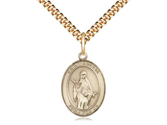 Colgante de ST Amelia relleno de oro de 14kt en una cadena de acera pesada de placa de oro de 24 pulgadas.