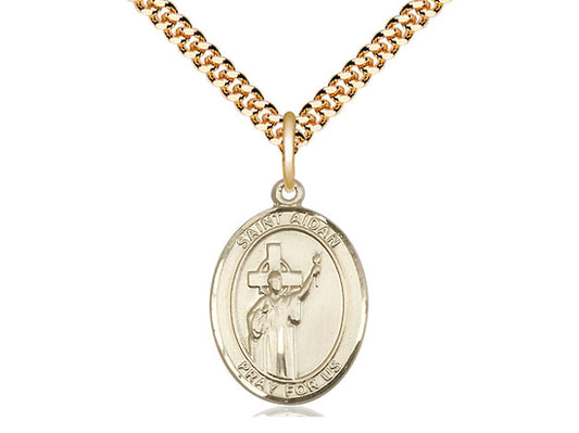 ST Aidan llena de oro de 14kt de colgante de Lindesfarne en una cadena de acera pesada en una placa de oro de 24 pulgadas.