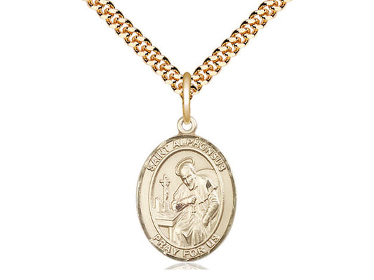 Colgante ST Alfonsus relleno de oro de 14kt en una cadena de acera pesada de placa de oro de 24 pulgadas.