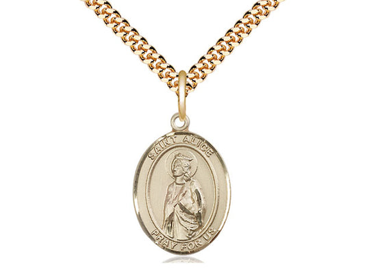 Colgante de St Alice relleno de oro de 14kt en una cadena de acera pesada de placa de oro de 24 pulgadas.