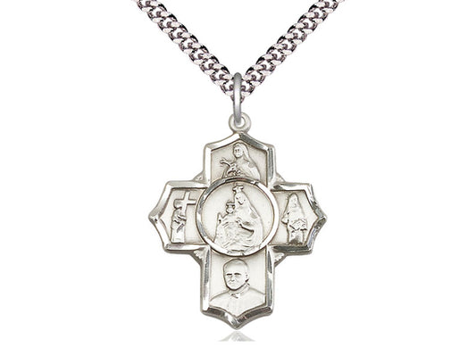 Colgante de 4 vías de plata de plata esterlina en una cadena de bordillo pesado de rodio de rodio de 24 pulgadas