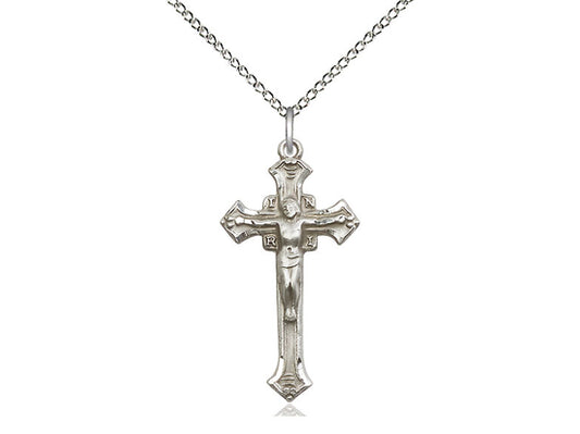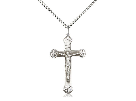 Colgante de crucifijo de plata esterlina en una cadena de acera de luz de plata esterlina de 18 pulgadas