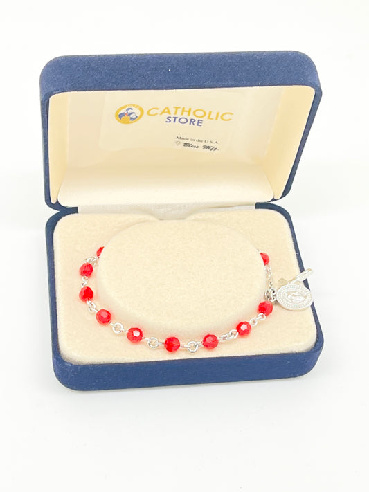 Red Ruby Rundell Crystal Rosary Bracelet 6MM