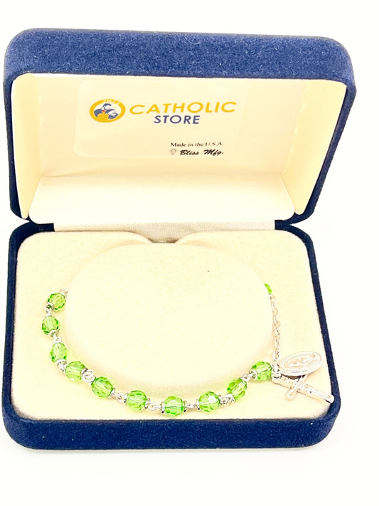 Peridot Rundell Crystal Rosary Bracelet 6MM