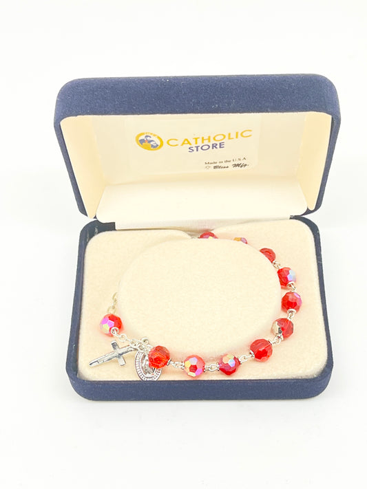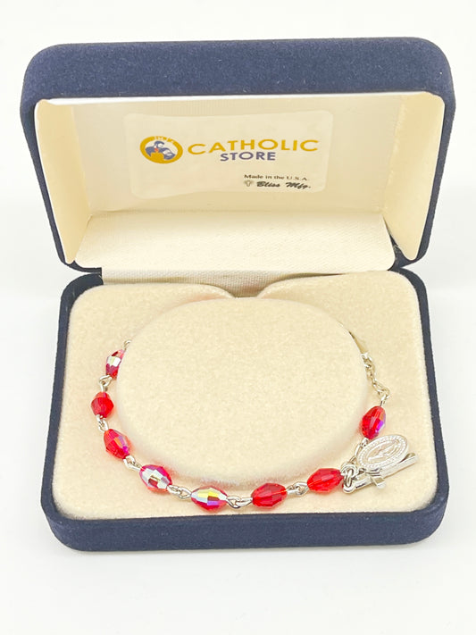 Ruby Austrian Gem Cut Crystal Rosary Bracelet