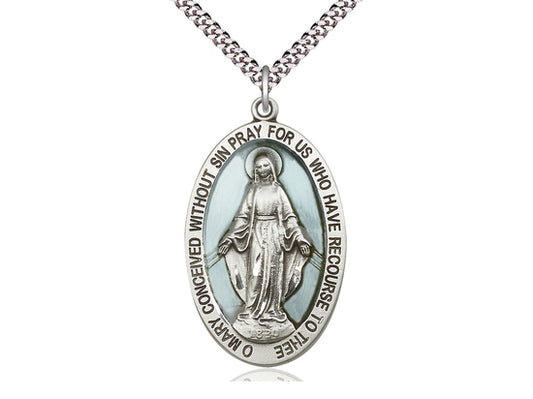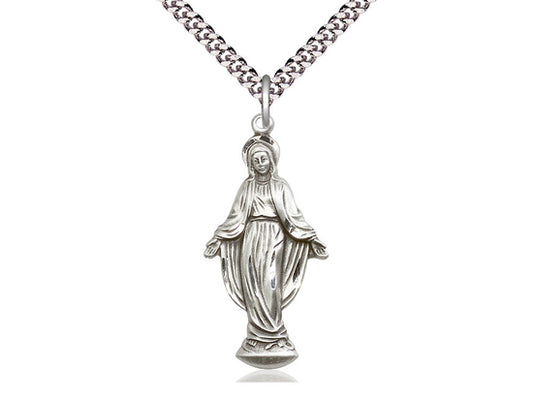 Colgante milagroso de plata esterlina en una cadena de acera pesada de rodio ligero de 24 pulgadas.