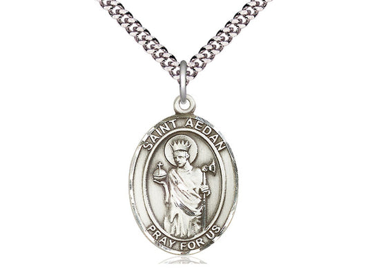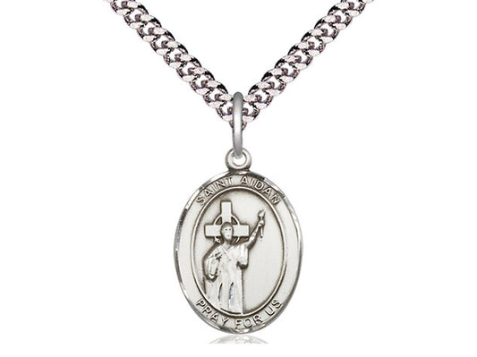 Sterling Silver St Aidan del colgante de Lindesfarne en una cadena de acera pesada de rodio ligero de 24 pulgadas.