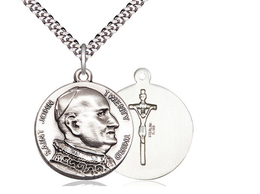 Sterling Silver St John XXIII colgante en una cadena de acera pesada de rodio de 24 pulgadas de luz de 24 pulgadas