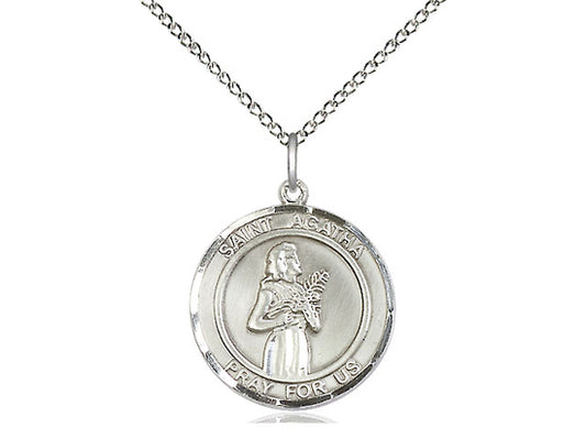 Colgante de plata esterlina St Agatha en una cadena de acera de luz de plata esterlina de 18 pulgadas.