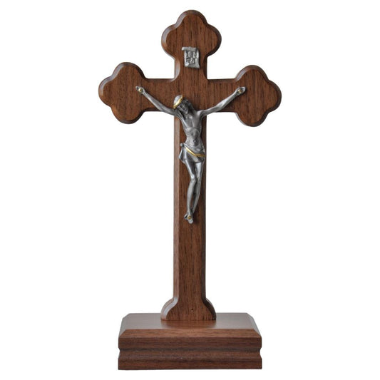 Crucifijo de pie en nogal (9 ")