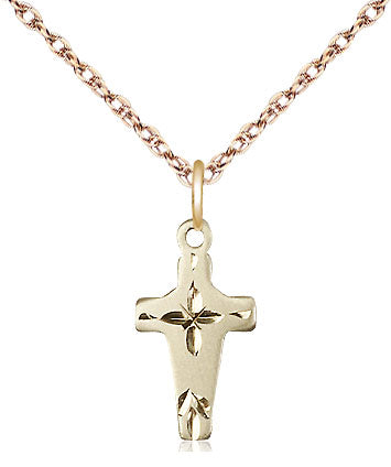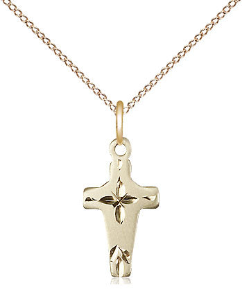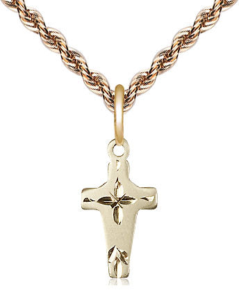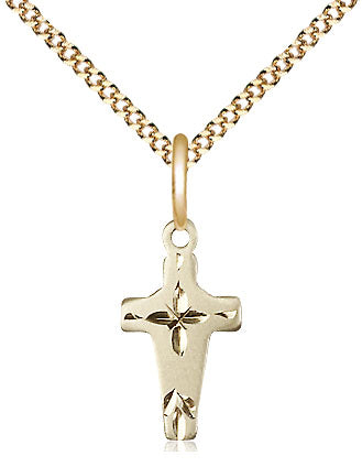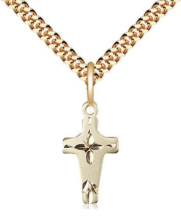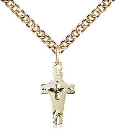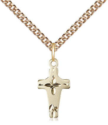 Colgante cruzado lleno de oro de 14kt en una cadena de acera de placa de oro