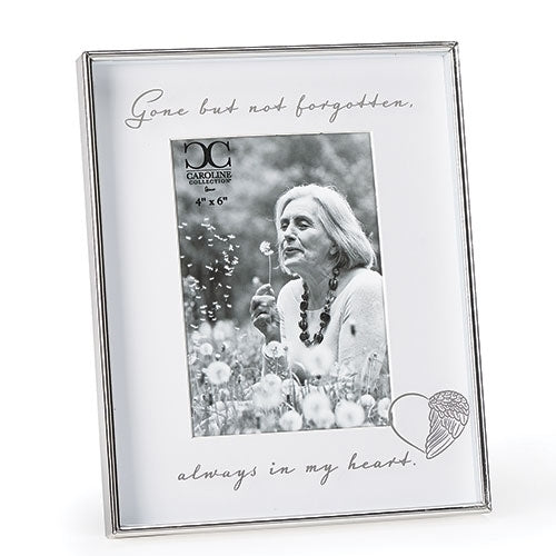 This memorial frame serves as a gentle reminder of a loved one’s enduring presence. Etched with the heartfelt message “Gone but not Forgotten, always in my heart,” it offers comfort and peace while holding a cherished 4" x 6" photo. A thoughtful bereavement gift or a meaningful addition to your own home.