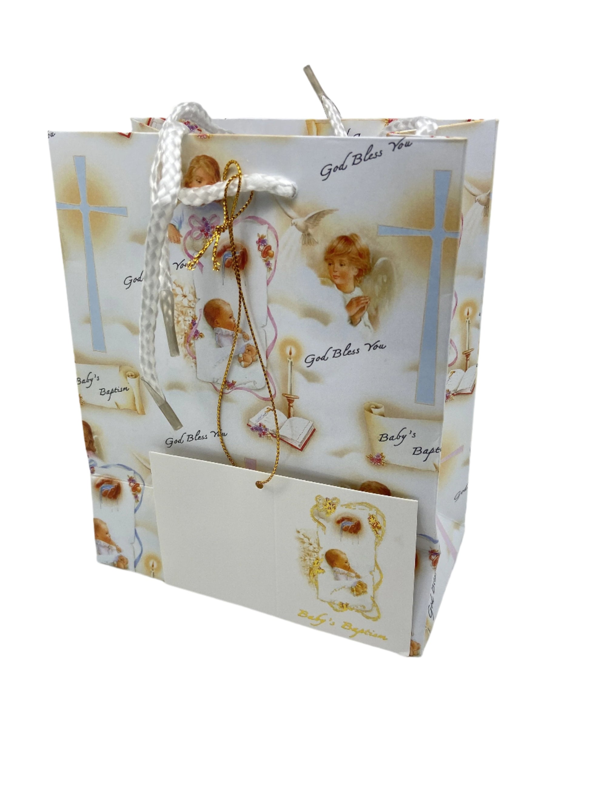 Hermosa bolsa de regalo para un bebé Bautismo. Lee "Bebé Bautismo" y Que Dios los Bendiga"