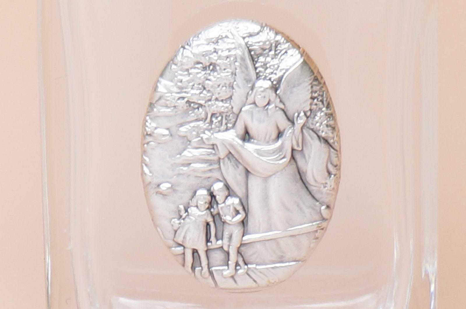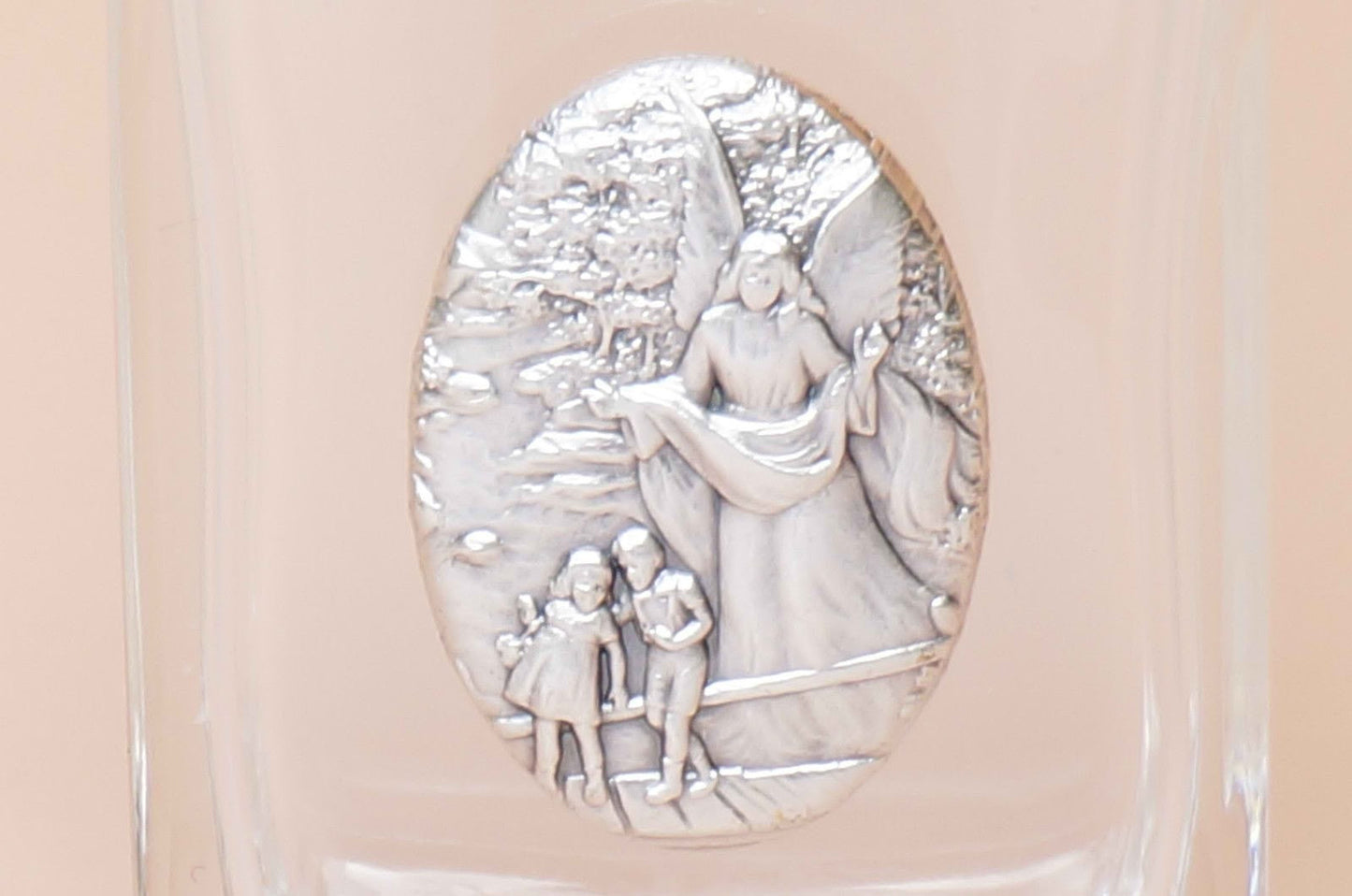 Botella de Agua Bendita del Angel Guardian es hecha de vidrio. Viene con una bolsa organza. Es un regalo ideal para el Bautizo u obsequio para una ocasion especial. Sera enviado por correo de Primera clase.