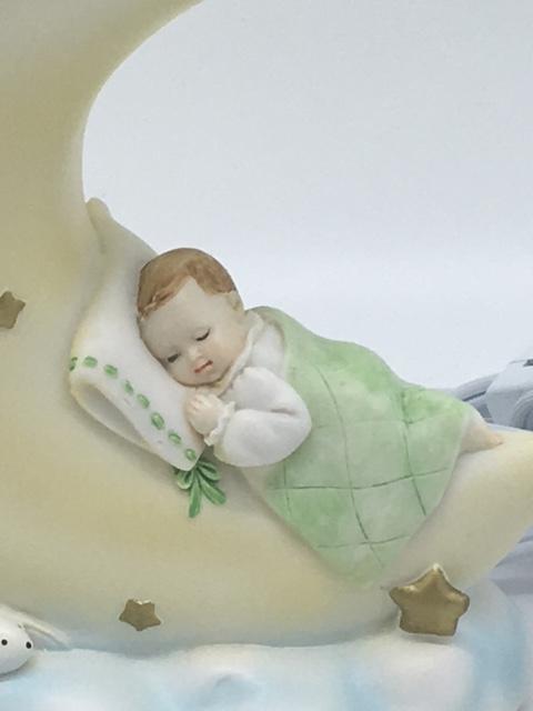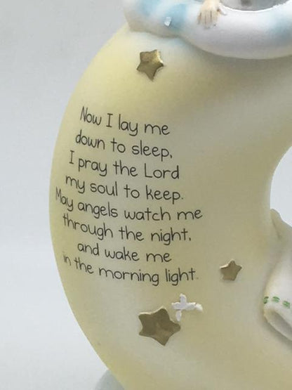 Encantadora y dulce luz nocturna (enchufable) en forma de luna con una variedad de imágenes divertidas. Gran regalo para cumpleaños y bautizos. La oración "Ahora me acuesto a dormir" está escrita en el frente.