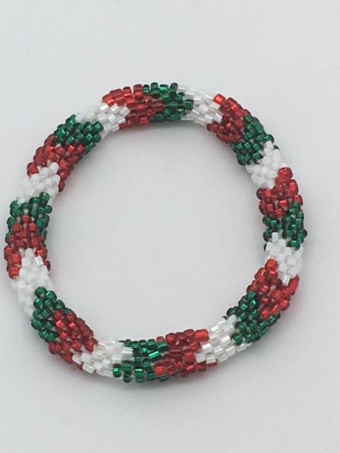 Pulsera de Navidad de Nepal (verde, rojo, blanco estilo 3)