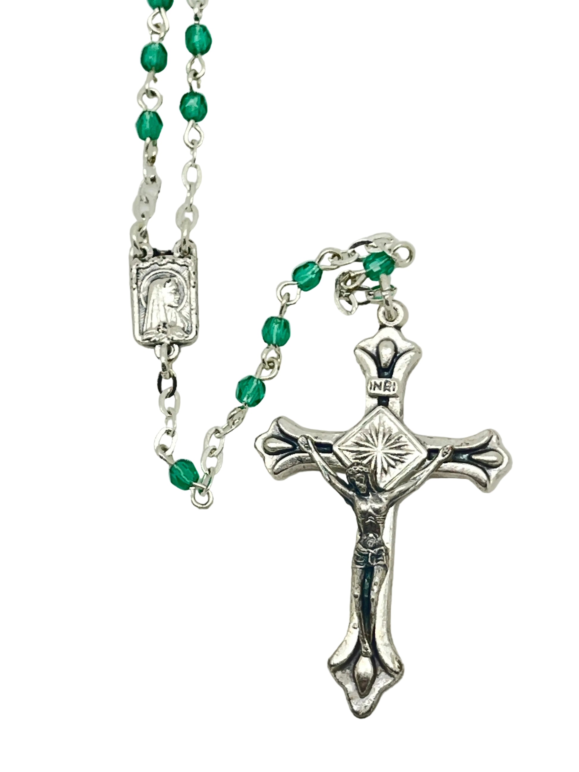 Petite Green Crystal and Silver Rosary 3mm