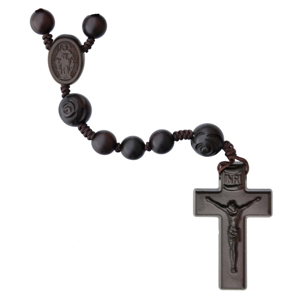 Rosario de madera de azufaifa tallada en rosa (10 mm)Rosario robusto y con cable.Cuentas de madera de azufaifa lisa, redonda y oscura