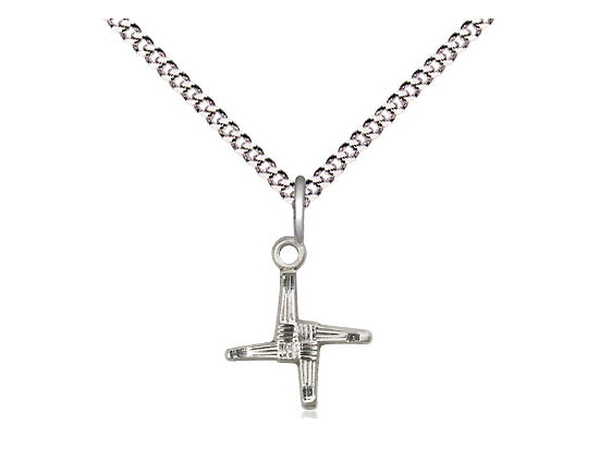 The St. Brigid Cross Medal is crafted with sterling silver and measures 1/2". A Rhodium plated chain measuring 18" is included. This piece honors Ireland's second patron saint, St. Brigid, celebrated on her birthday, the first day of spring, February 1st (Lá Fhéile Bhride). She is also recognized as Muire na nGael or "Mary of the Gael," referred to as Our Lady of the Irish. The medal boasts a 5/8" diameter and comes in a deluxe box.