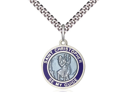 Pendiente de Sterling Silver St Christopher en una Cadena de Freno de la Luz de la Plata de ley de 18 pulgadas.
