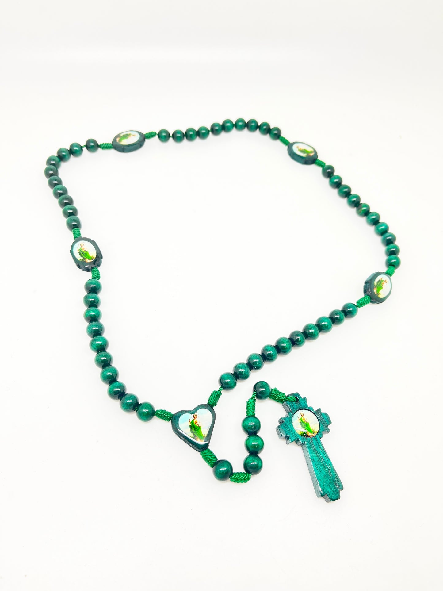 Dark Green wood beads and a Saint Jude centerpiece and Matching Cross.