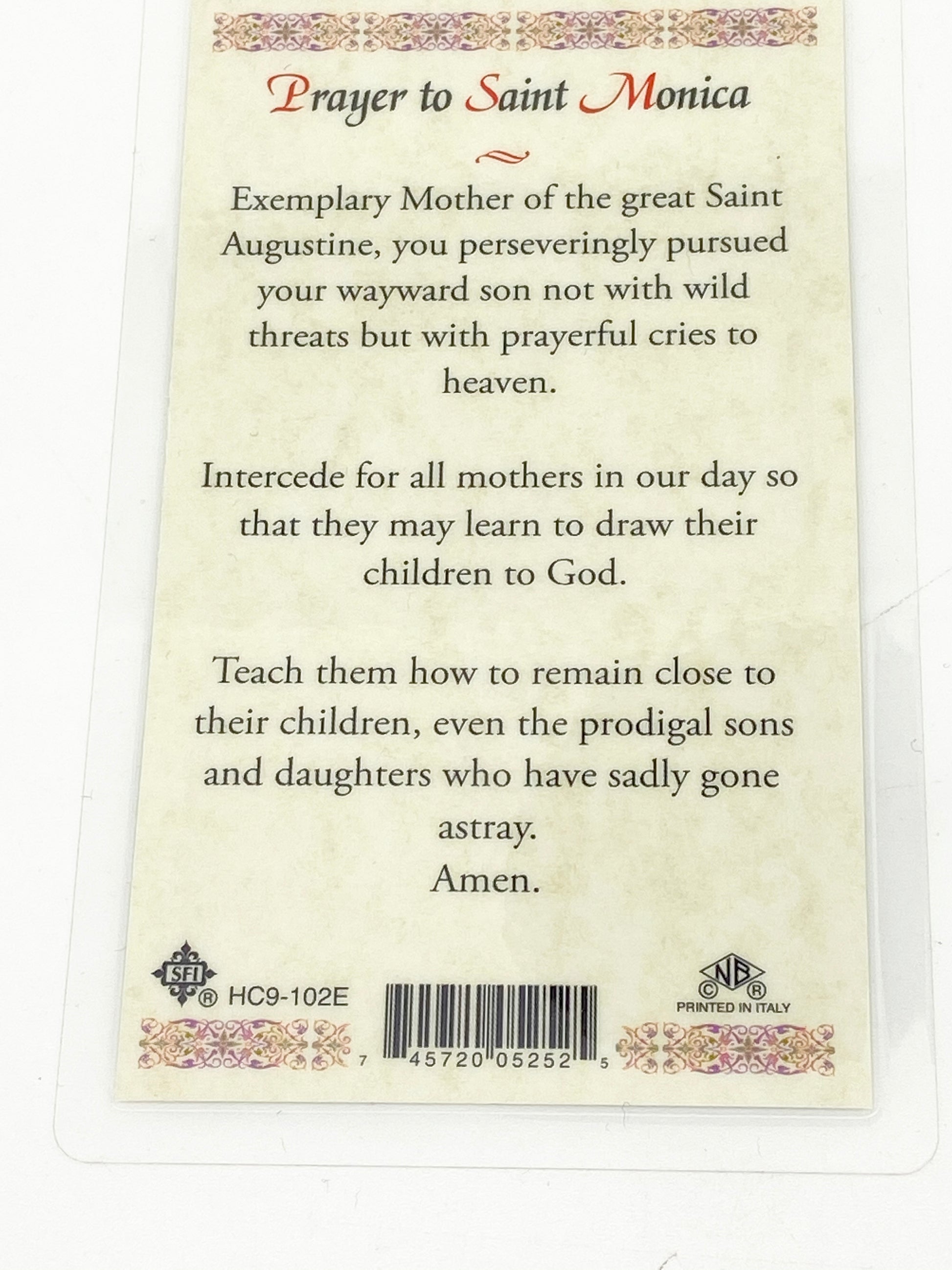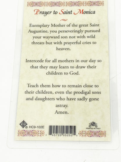 Hermosa tarjeta sagrada laminada de tu santo favorito, con foto y oración.