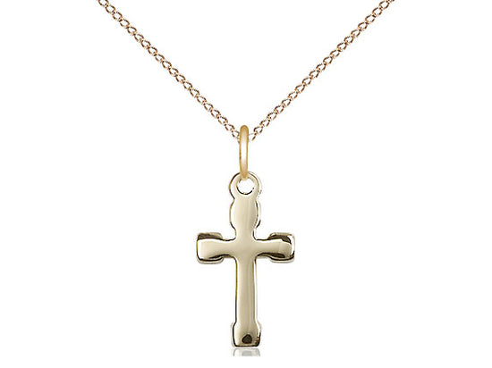 14kt Gold Filled Cross Pendant on a 18 inch Gold Filled Light Curb Chain