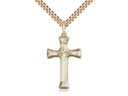 14kt Gold Filled Cross Pendant on a 24 inch Gold Plate Heavy Curb Chain
