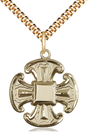 This 14K gold-filled medal offers the luster and beauty of solid 14 Karat Gold at a much lower price. Gold-Filled medals are made by a special process that infuses 14K gold with other medals to create a durable pendant with the look, feel and weight of solid gold. Unlike gold-plated medals, it won't chip easily. We also carry thousands of solid 14K gold medals if you're looking for something even more special.