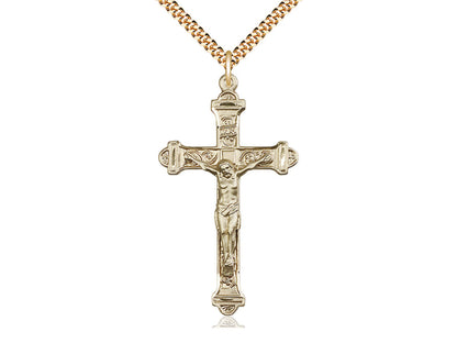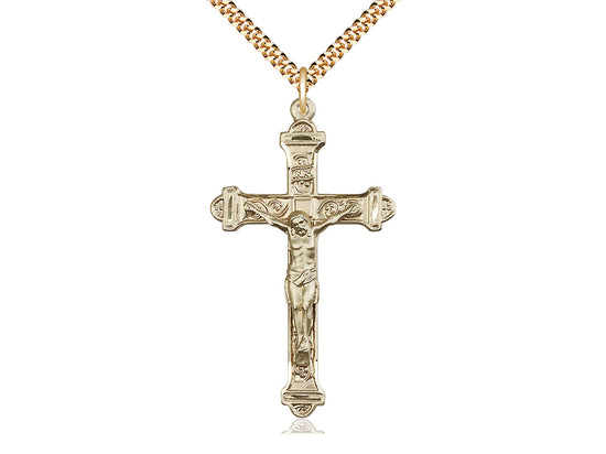 14kt Gold Filled Crucifix Pendant on a 24 inch Gold Plate Heavy Curb Chain.