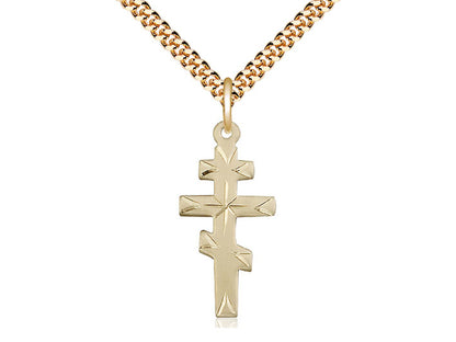 This elegant 14K gold-filled Greek Orthodox cross pendant comes on a 24-inch gold-plated heavy curb chain for a classic and timeless look. Designed with faith and tradition in mind, this piece is perfect for everyday wear or as a meaningful gift.