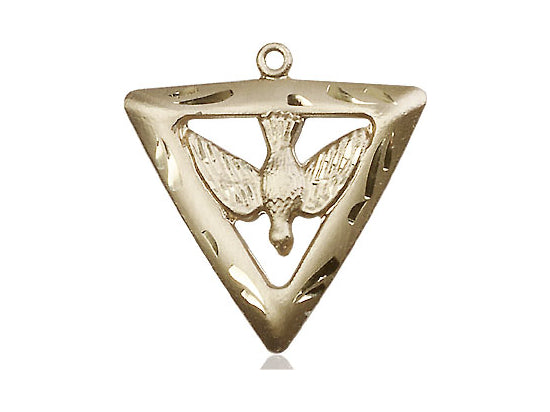 This elegant 14kt gold-filled Holy Spirit Triangle Medal is a timeless symbol of faith and protection. Measuring 1” tall by 7/8” wide, it features a beautifully crafted design that radiates divine grace. Suspended on a sturdy 24” gold-plated heavy curb chain, it offers durability and style. A meaningful piece for daily wear or a cherished gift for any believer.