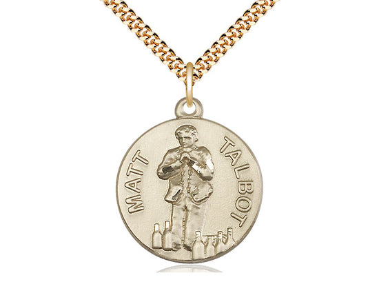 This 14kt gold-filled Matt Talbot pendant is a beautiful and meaningful piece, featuring a detailed Matt Talbot medal. Suspended on a 24-inch gold-plated heavy curb chain, it combines elegance with durability, making it a timeless accessory. Perfect for those seeking inspiration from Matt Talbot’s life of prayer and recovery, it’s a stunning addition to any collection.