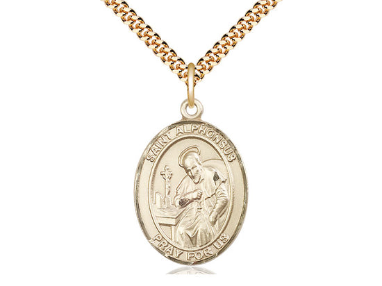 14kt Gold Filled St. Alphonsus Pendant on a 24 inch Gold Plate Heavy Curb Chain