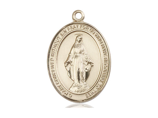 This exquisite 14kt gold Miraculous Medal is a timeless expression of faith and devotion to the Virgin Mary. Crafted with precision, the medal features intricate details that capture the traditional design of the Miraculous Medal, including the image of Mary encircled by the prayer, "O Mary, conceived without sin, pray for us who have recourse to thee." Measuring 1 inch tall by 3/4 inch wide, it is a perfect size for daily wear, offering both elegance and spiritual significance.
