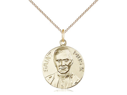 Crafted from high-quality 14kt gold, this pendant features the St. Pius X Medal, symbolizing faith and devotion. It offers a timeless design that can be worn for both everyday and special occasions. -