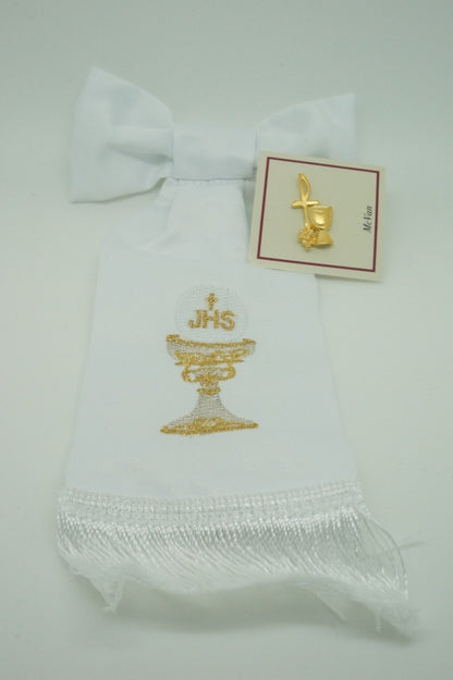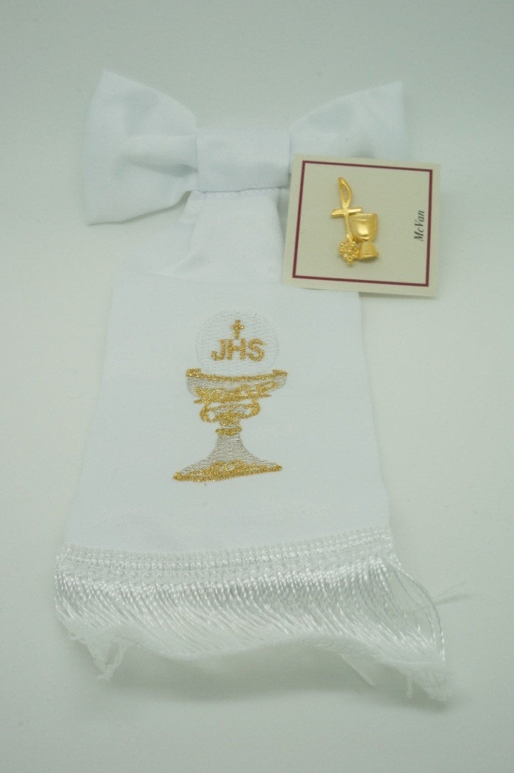 Brand New! Our adorable handmade Arm Band with Chalice made with Gold and Silver Thread. Includes a Gold Chalice Pin. Mailed in First Class.
