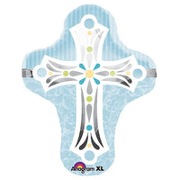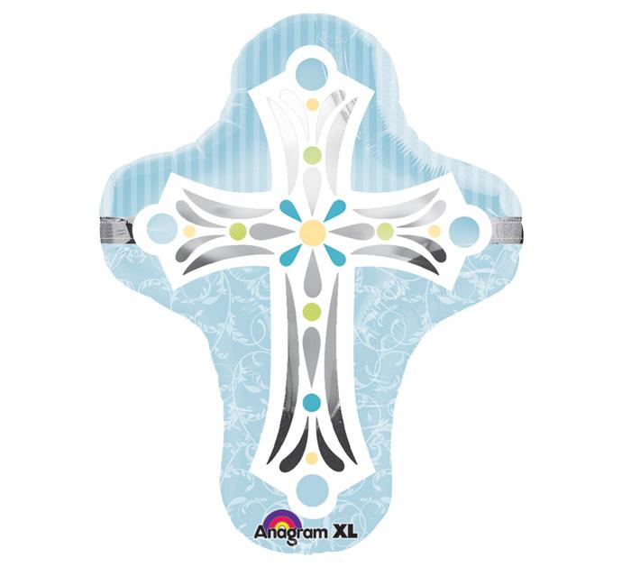 Blue cross shaped foil balloon 28 inches.