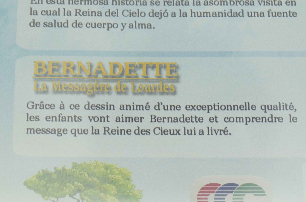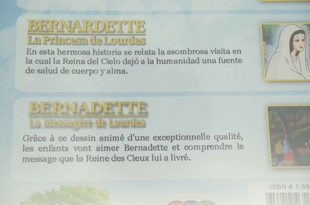 Grace a ce dessin anime d'une exceptionnelle qualite, les enfants vont aimer Bernadette et comprendre le message que la Reine des Cleux lui a livre.