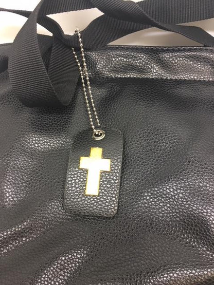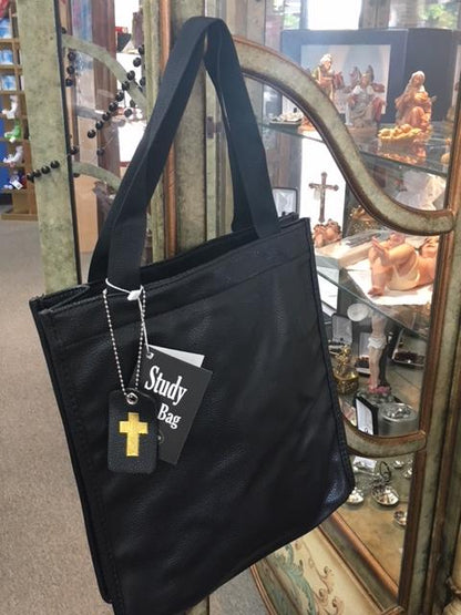 Amazing tote bag for all your study needs. It comes with a Cross Tag. Inside a large Pocket designed for your Bible, storage pocket for your Tablet Pocket for Cellphone, Coin and Cash Holder, Key Holder and Pen Holder. 11" wide, 12" Tall and 4" Thick