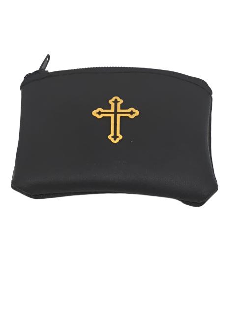 Black Genuine Leather with Cross Rosary Pouch (3 x 21/2")