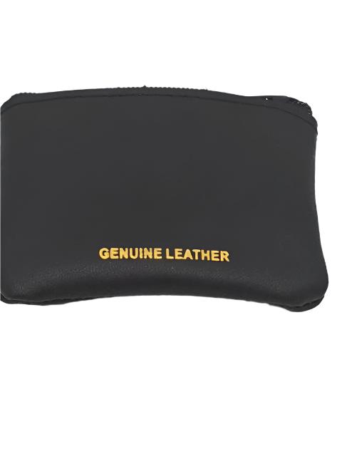 This black genuine leather pouch features a zippered closure and a cross design on the front, making it the perfect size for storing your favorite rosary. An excellent gift choice. Measures 3 inches by 2.5 inches.