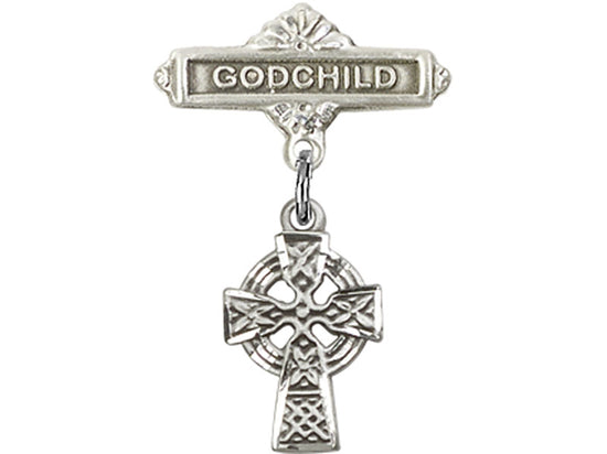 This sterling silver baby badge features a delicate Celtic Cross charm, symbolizing faith and protection. Designed as a thoughtful keepsake for a godchild, it includes a Godchild badge pin, making it a perfect gift for special occasions like baptisms or christenings. Crafted with high-quality sterling silver, this badge is both meaningful and timeless, a cherished reminder of the bond between godparent and child.